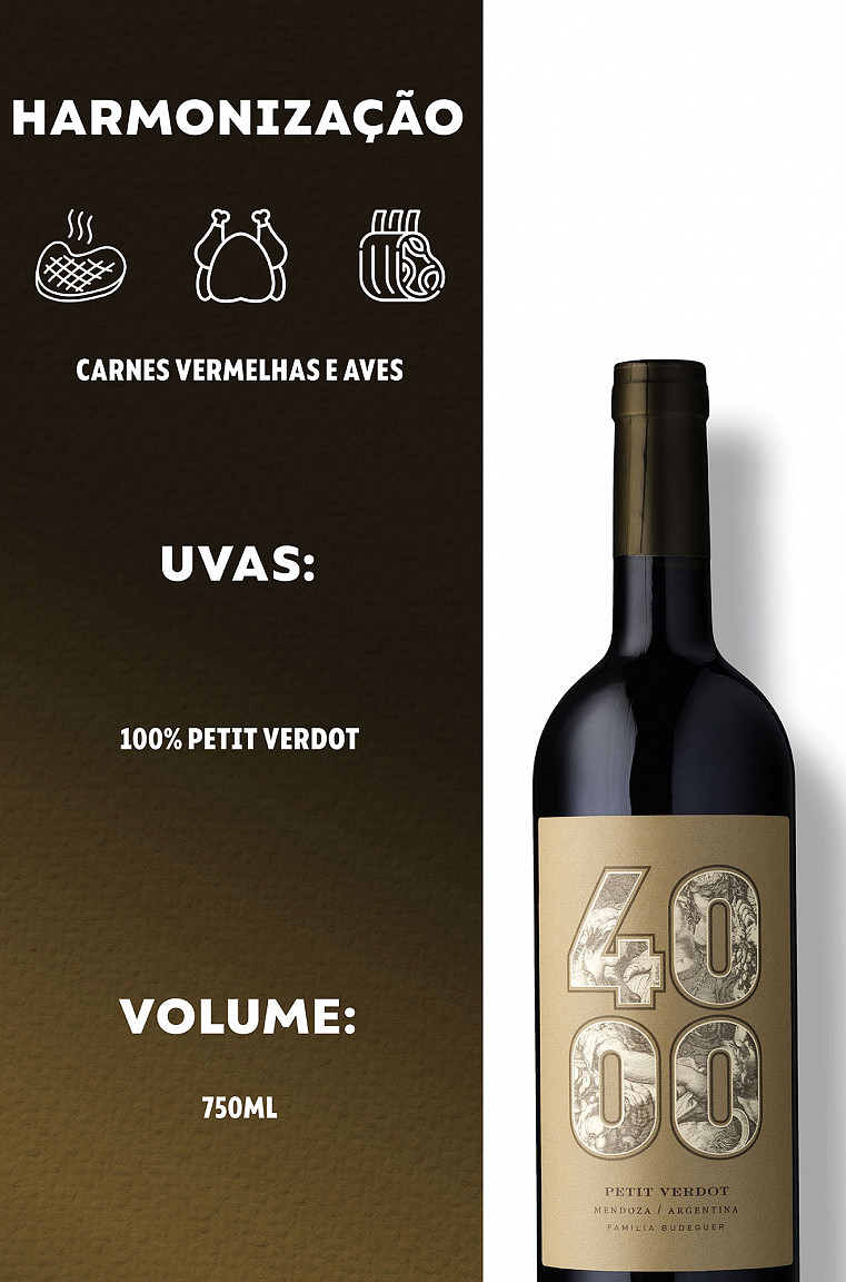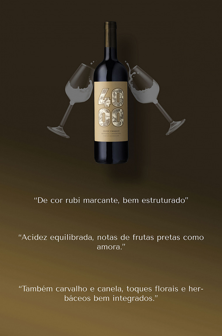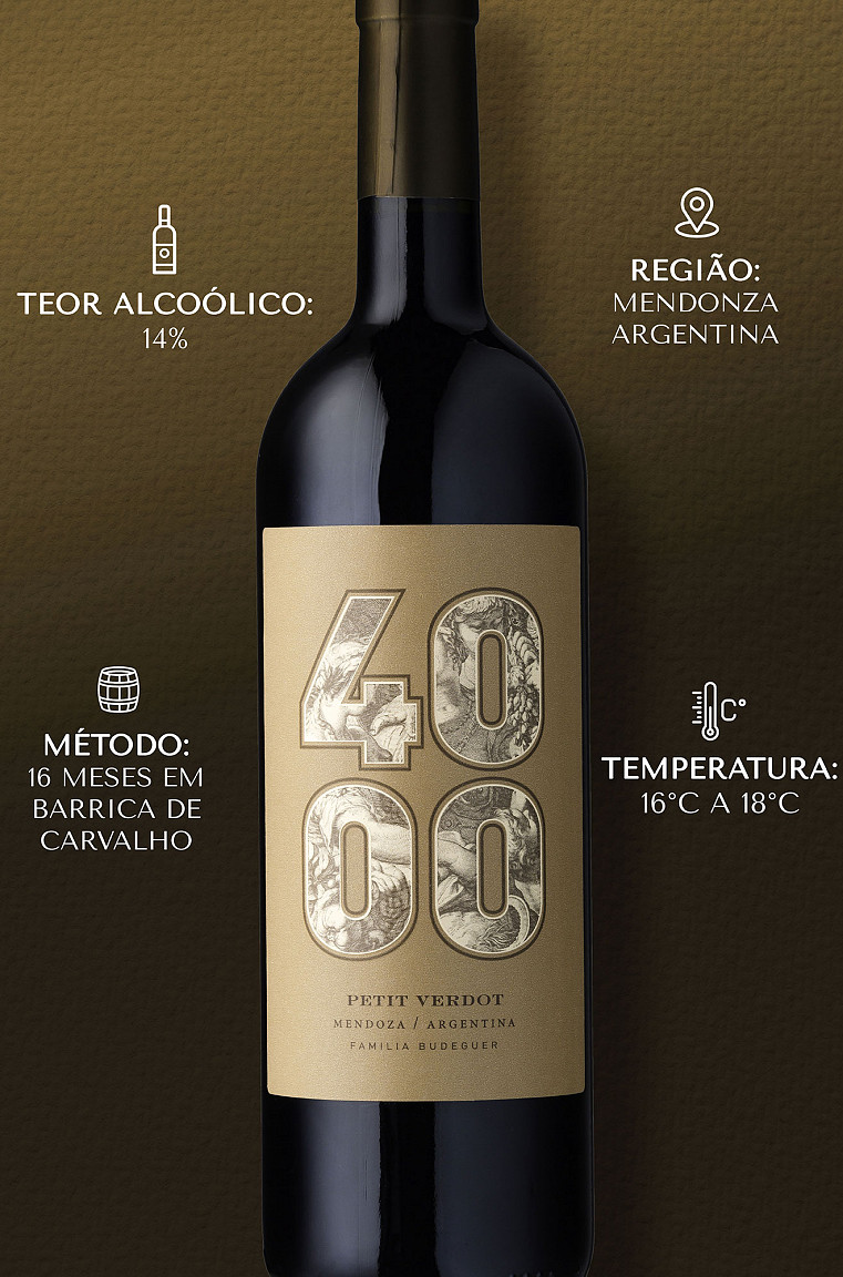 O 4000 Petit Verdot 2017 é uma expressão autêntica e rara da renomada região de Mendoza, demonstrando o potencial desta uva muitas vezes usada em cortes.
