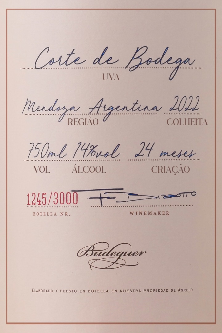 BUDEGUER PARTIDA LIMITADA CORTE DE BODEGA - 750ML - 2022 - VINHO FINO TINTO SECO
