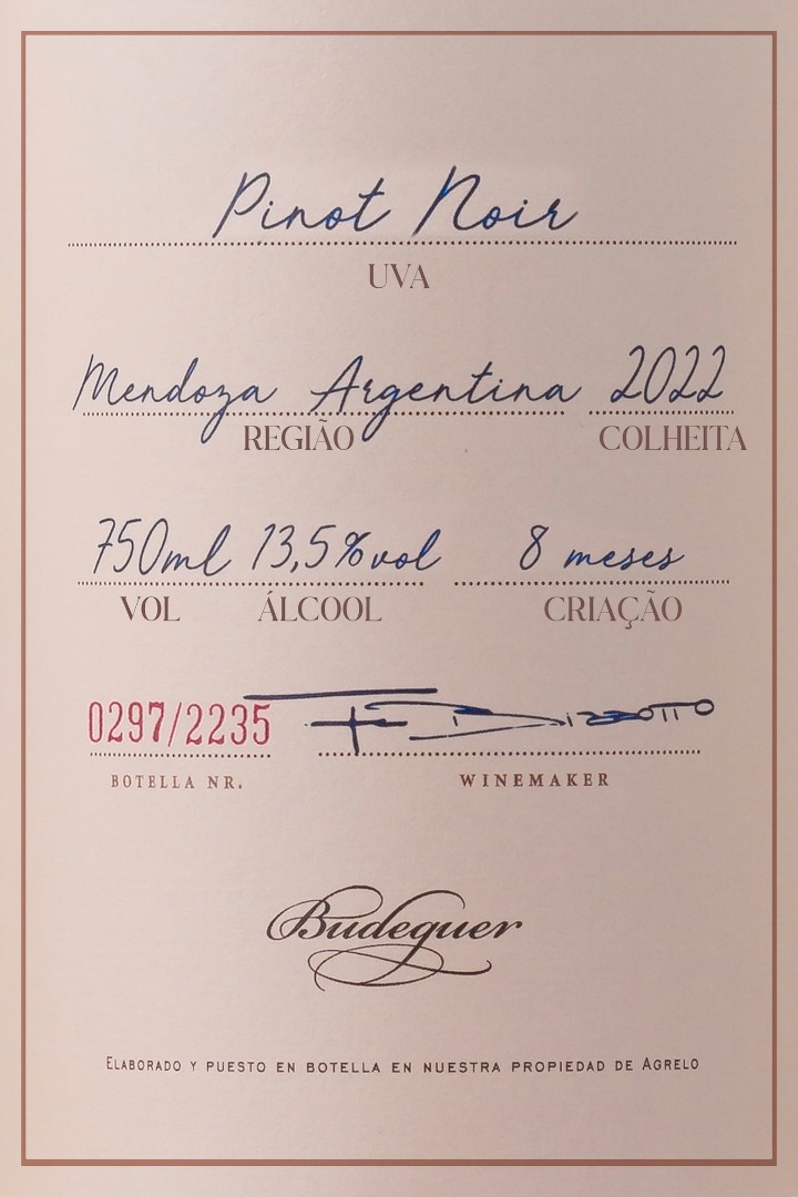 BUDEGUER PARTIDA LIMITADA/GY PINOT NOIR - 750ML - 2022 - VINHO FINO TINTO SECO