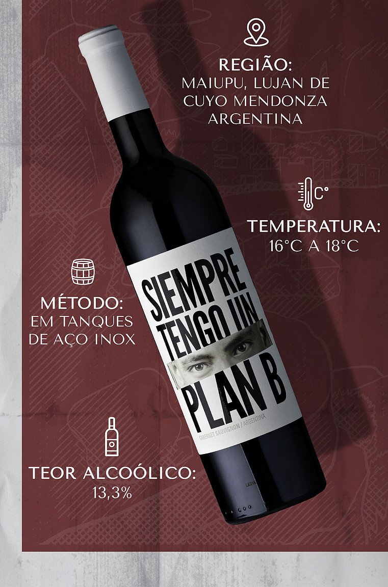 Descubra o Vinho Siempre Tengo Un Plan B Cabernet Sauvignon, uma expressiva variedade tinta da renomada região de Mendoza, Argentina, que combina elegância e caráter. Com 13,3% de graduação alcoólica, este vinho apresenta um perfil aromático envolvente, destacando notas de frutos vermelhos e especiarias, ideal para os apreciadores de vinhos encorpados e marcantes.