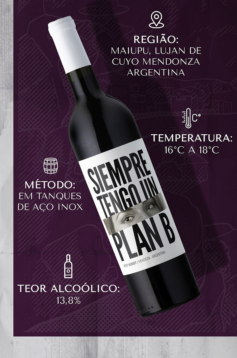 SIEMPRE TENGO UN PLAN B PETIT VERDOT - 750ML- 2021 VINHO FINO TINTO SECO