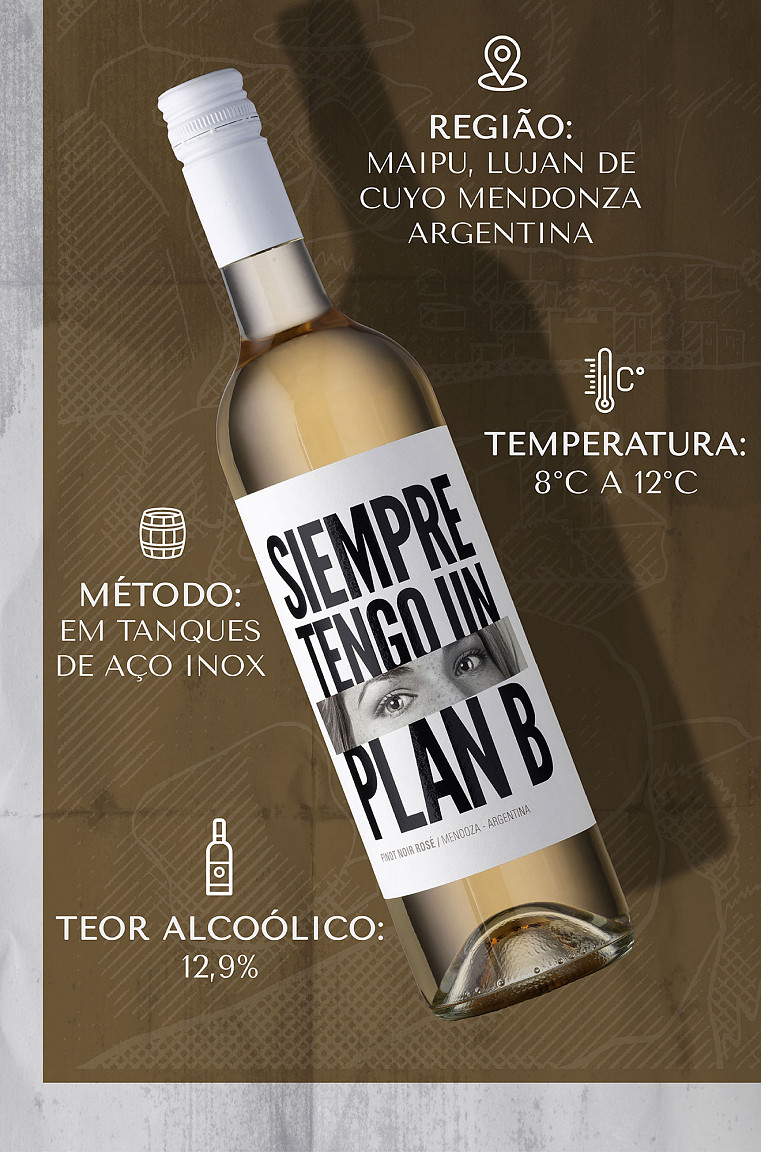 Descubra o Vinho Rosé Siempre Tengo Un Plan B, uma experiência sensorial que combina a elegância do Malbec com o frescor do Pinot Noir. Com graduação alcoólica equilibrada, este vinho apresenta aromas de intensidade média, com notas marcantes... ver mais